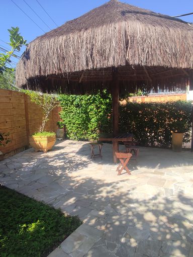 Fica a poucos minutos da praia e próxima de mercado, padaria e comércios locais.